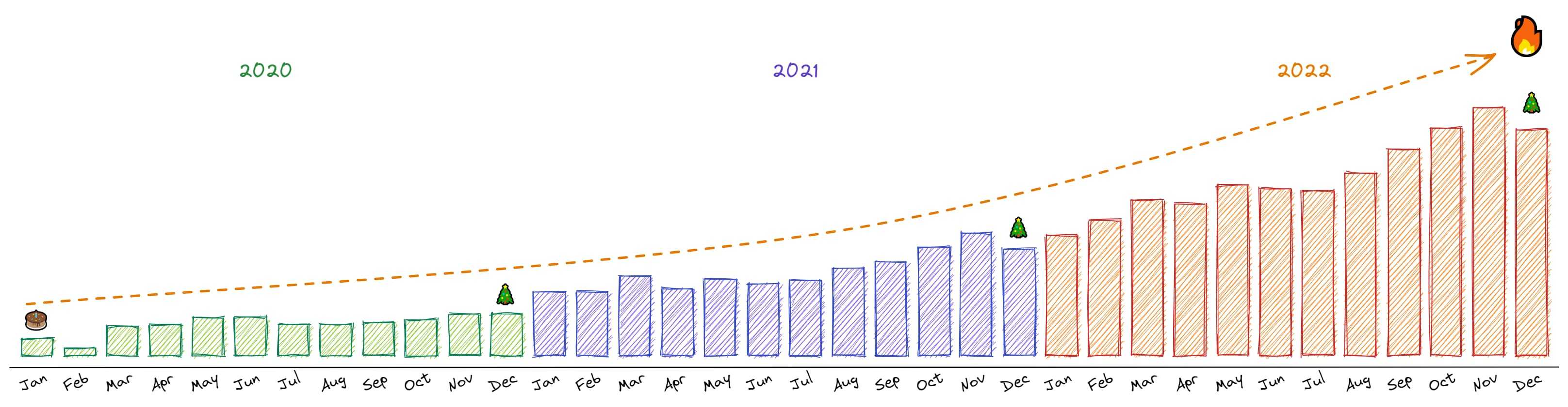 With your help, we’ve recently crossed 350K monthly users. 🔥 On top of that, we’ve counted 38K stars on GitHub just before the end of the year, and are constantly trending everywhere, such as on the bestofjs.org project repository — this helps the open-source part of Excalidraw get in front of more developers like you!